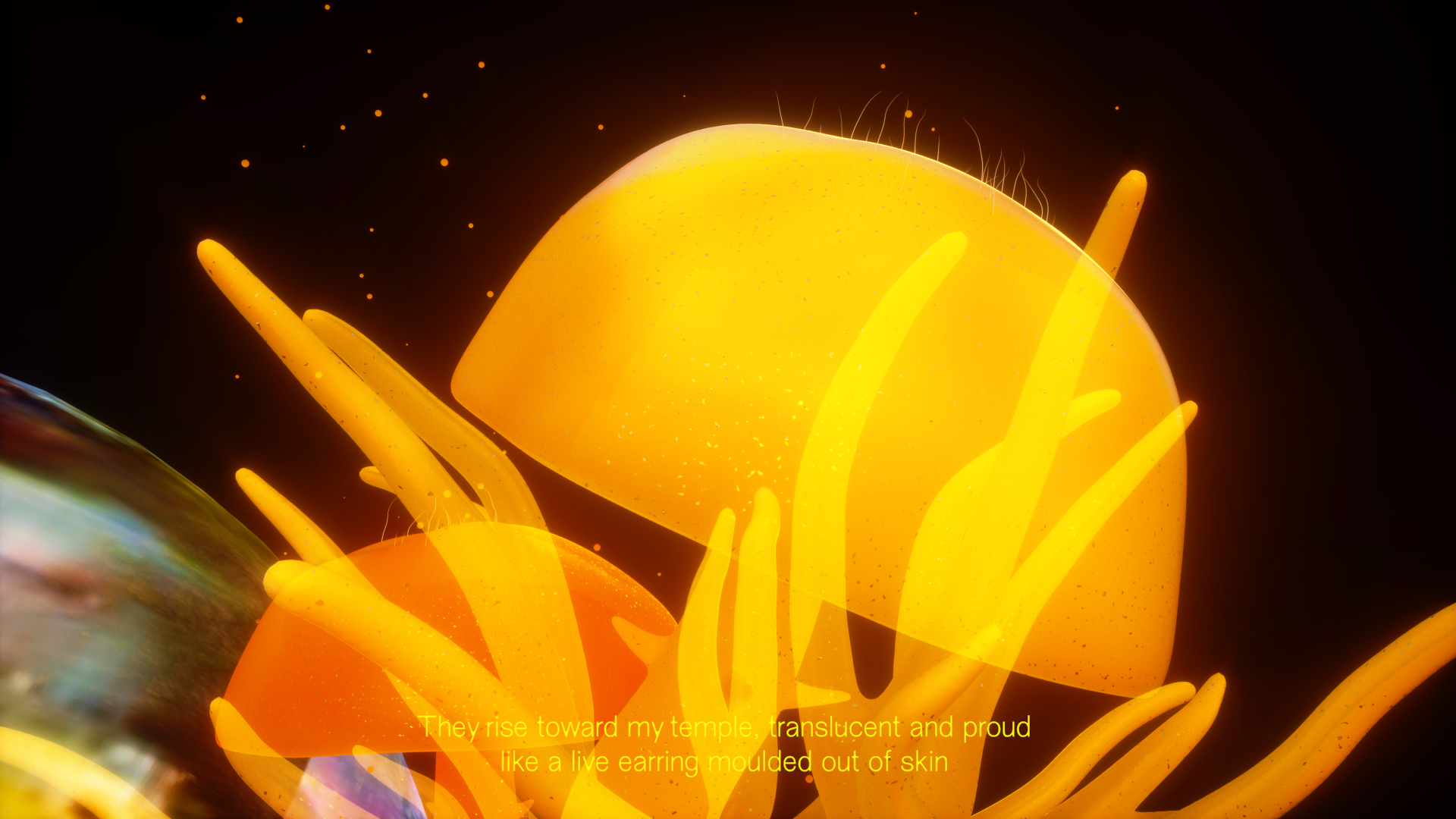 Subskinians / Ihonalaiset (2023) is a web-based short film (ihonalaiset.com) that discusses the questions of self-ownership and ecological relationships. The story revolves around a protagonist, who one day notices that something unexpected is growing out of her ear. This leads to a series of events that invites the spectator to contemplate on questions of consent as well as the division of self and other and human and nature. The film is based on Kanerva Lehtonen’s short story of the same name, written in 2015.